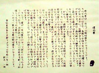僕の夢は一流のプロ野球選手になることです。そのためには、中学、高校と全国大会にでて活躍しなければなりません。