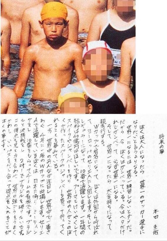 香川真司選手も小学校4年生の時の寄せ書きに「サッカー選手になる。ワールドカッに出る。背番号10番。ハーフのセンター」と、強い思いが書かれている。